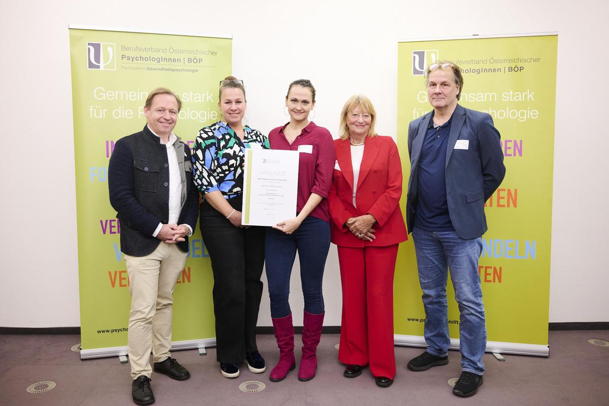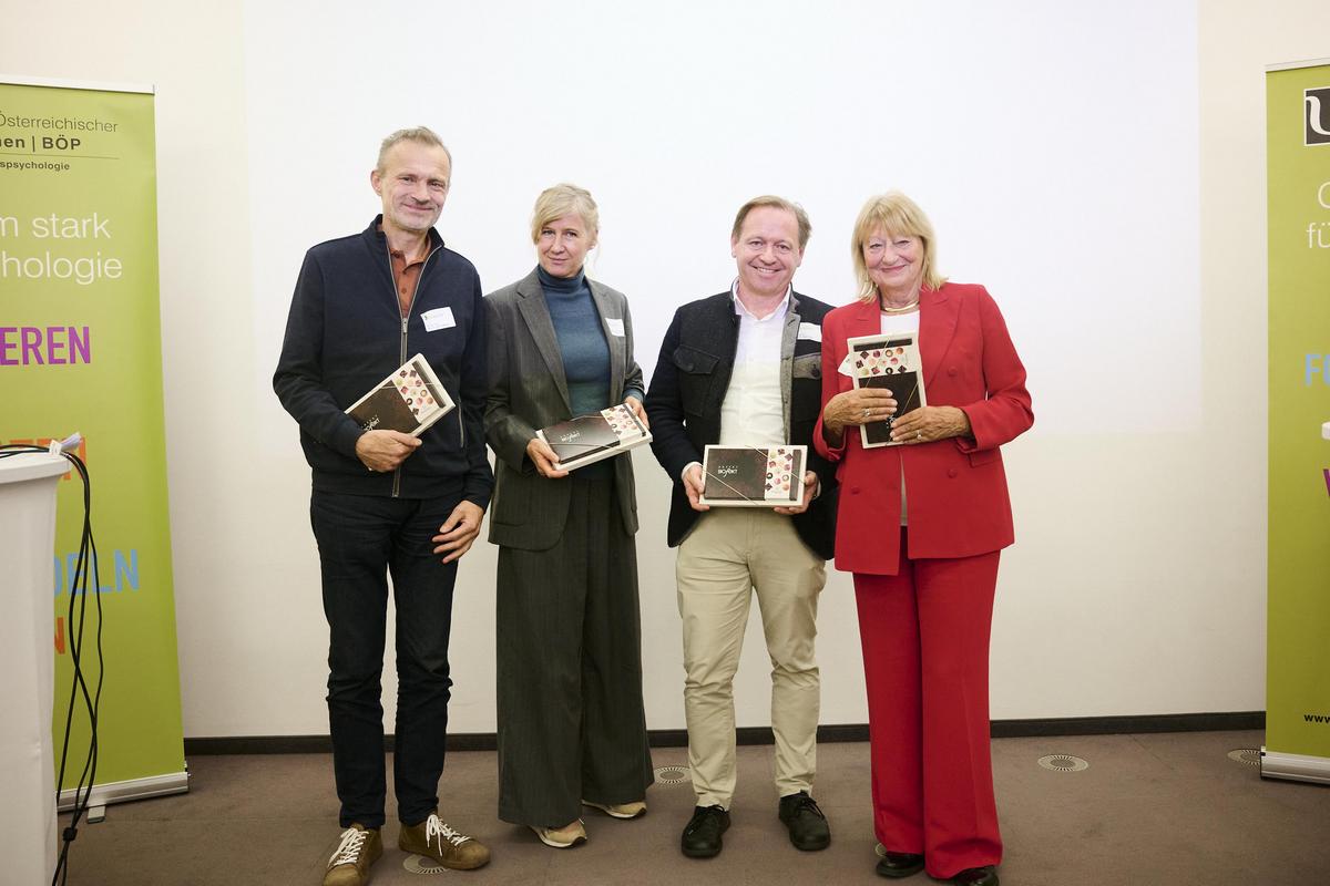 Die Jury des Österreichischen Gesundheitspsychologie-Preises setzte sich aus a.o. Univ.-Prof. Mag. Dr. Gerhard Blasche, BÖP-Präsidentin a.o. Univ.-Prof.in Dr.in Beate Wimmer-Puchinger, Prof. Mag. Dr. Stefan Höfer und Dr.in Mag.a Caroline Culen zusammen.