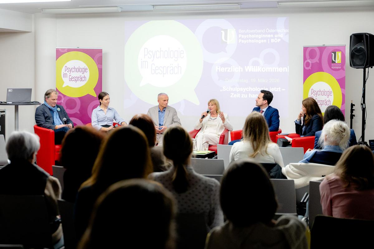 Den wachsenden Herausforderungen an österreichischen Schulen widmete sich am Donnerstag, den 19. März 2026, die BÖP-Veranstaltungsreihe „Psychologie im Gespräch“. Unter dem Motto „Schulpsychologie jetzt – Zeit zu handeln!“ fand eine Podiumsdiskussion statt, bei der über 700 Interessierte in Präsenz oder online teilnahmen.